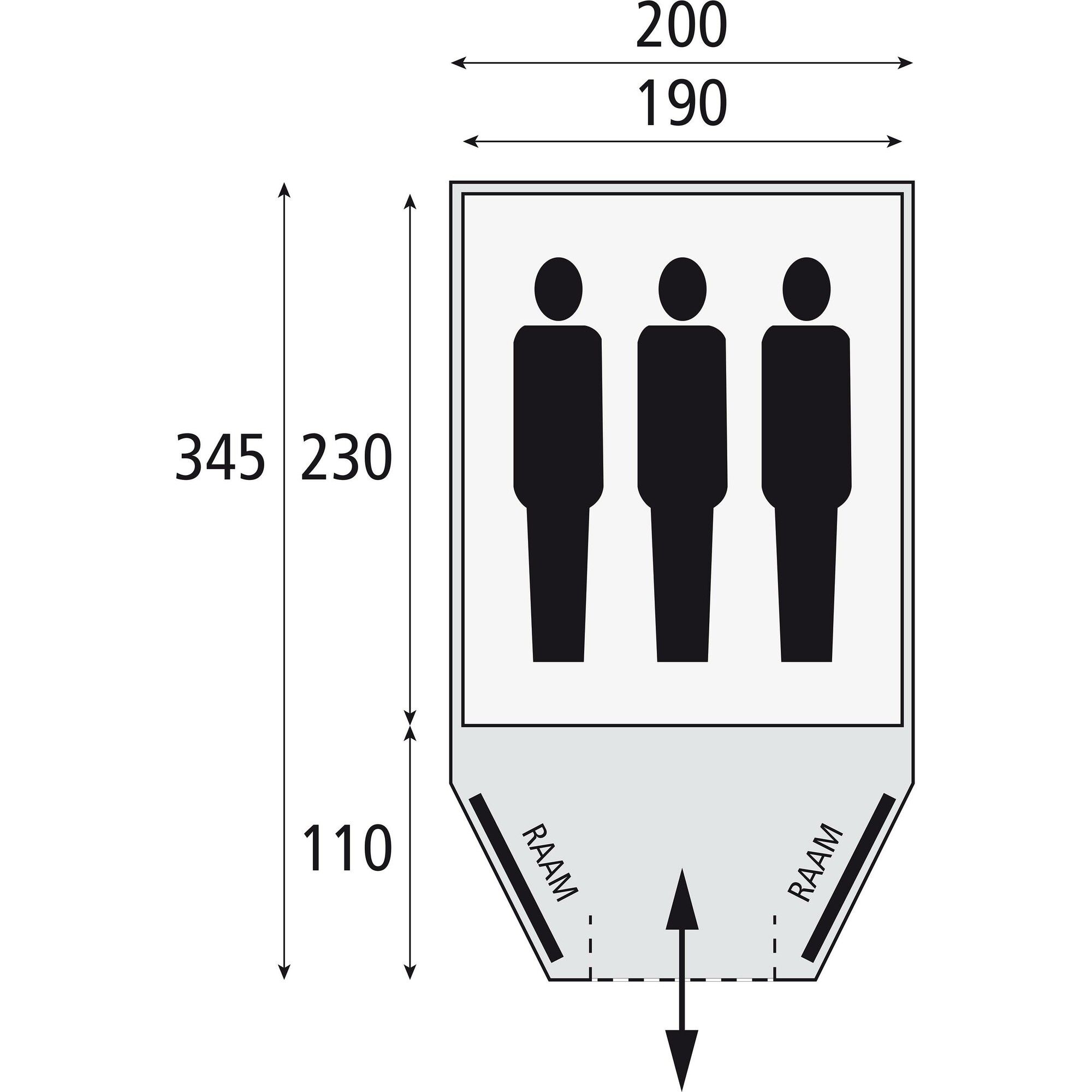 De tent heeft een extra donkere binnentent en een slaapvertrek van 230 cm lang. Er is permanente ventilatie in de tent en de ramen zijn afsluitbaar. De tent wordt geleverd inclusief draagtas, reflecterende scheerlijnen en haringen.