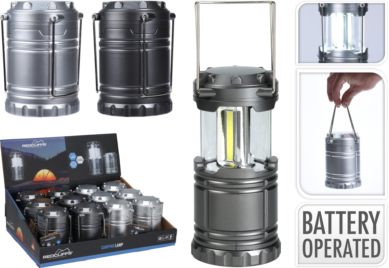 Campinglamp inklapbaar met LED lamp.Deze lamp werkt op batterijen (niet meegeleverd). 200 Lumen