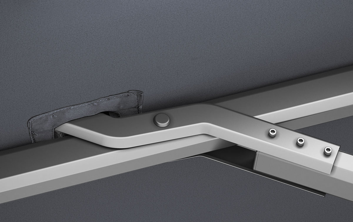 Het 240 gr/m2 Spuncrylic doek is tot in de vezel gekleurd om verkleuring te vertragen. Het doek is UPF50+ dus zeer goed zonwerend en ook water-en vuilafstotend.